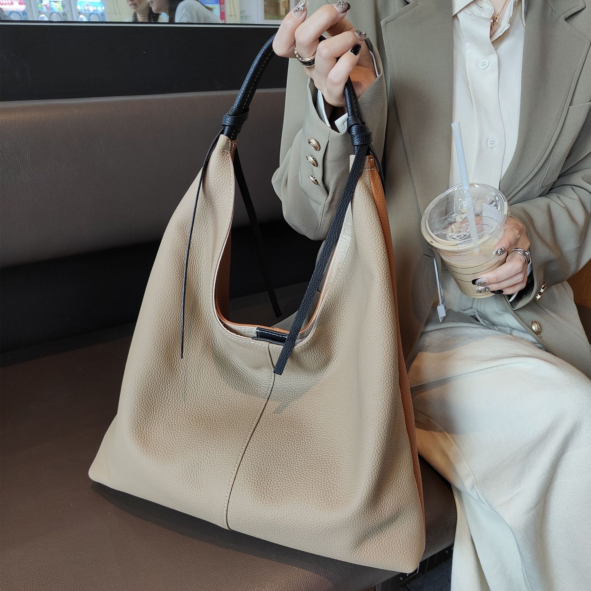 Big Trendy Underarm Design Soft Leather First Tote Bags