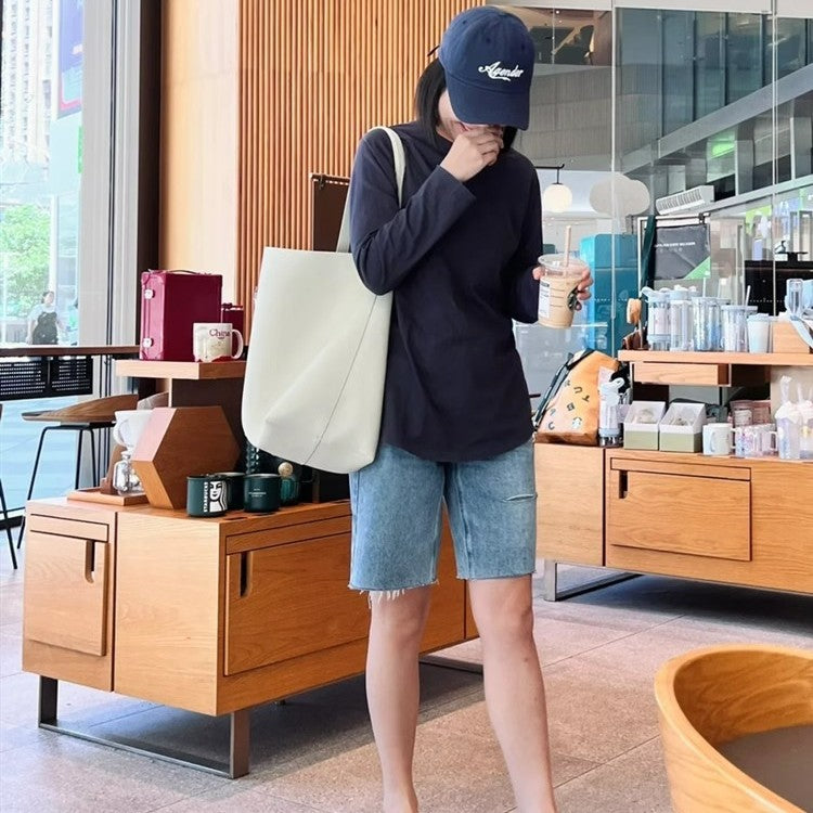Cowhide Lychee Pattern Large Capacity Commuter Bucket Bags