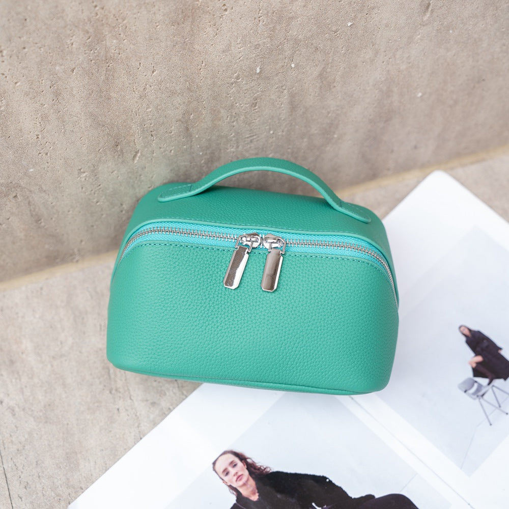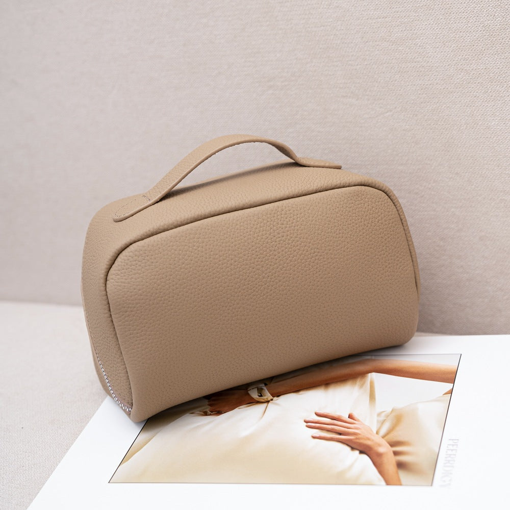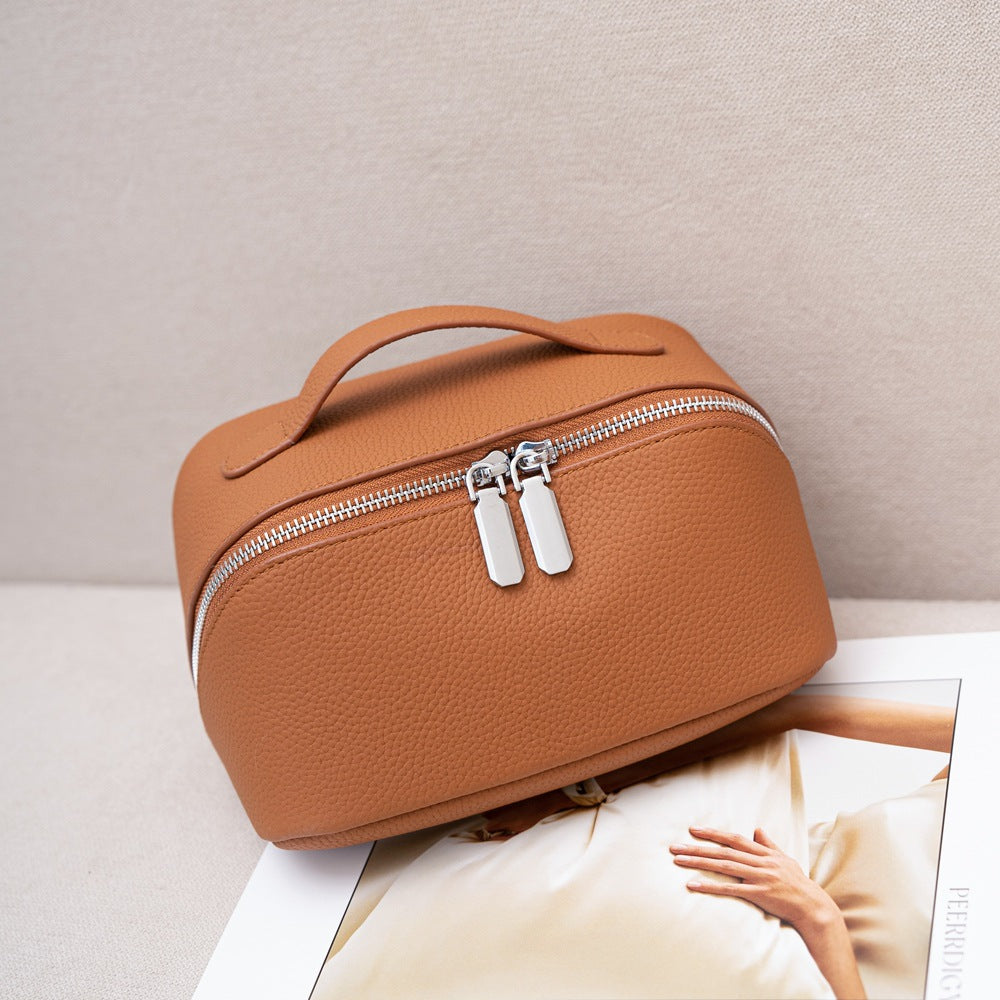 Cowhide Simple Style Large Capacity Wash Portable Cosmetic Bags