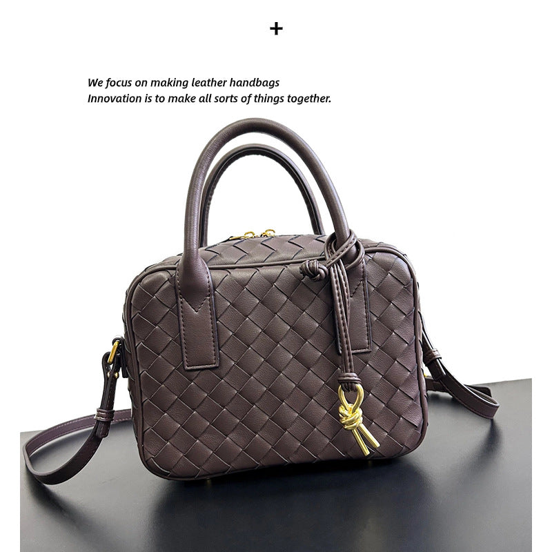 Cowhide Woven Portable Lunch Box Advanced Small Square Bags
