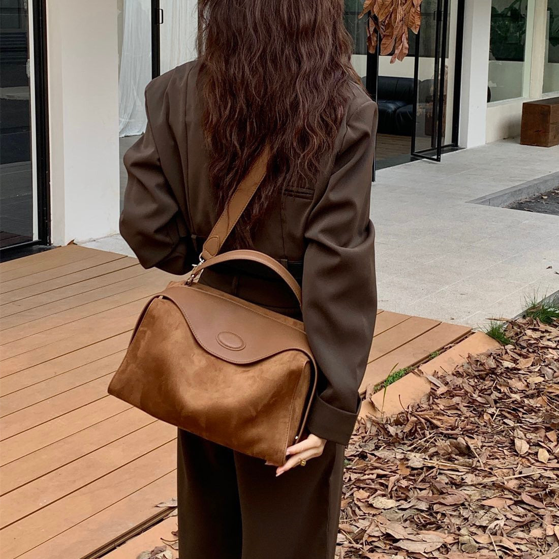 Design Cowhide Boston Pillow Retro Portable Handbags