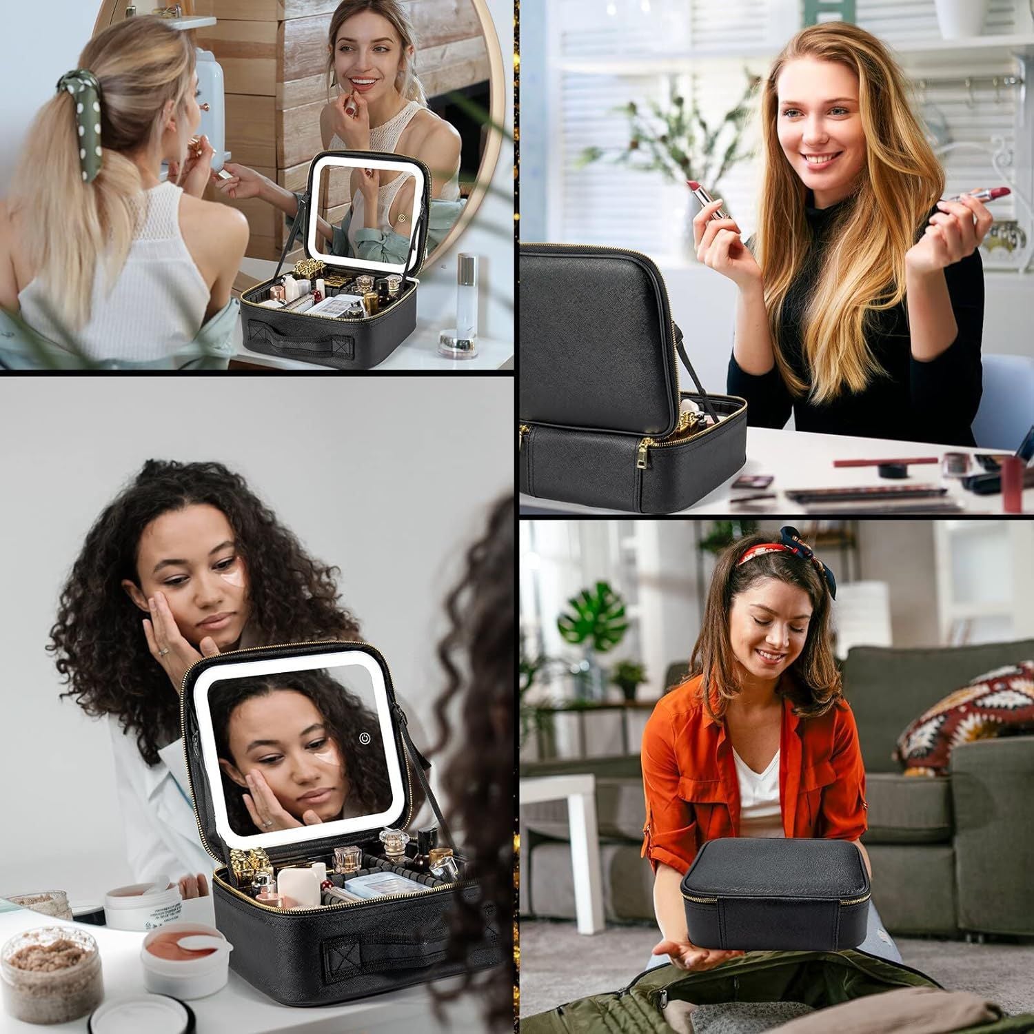 Good-looking Large Capacity With Light Mirror Cosmetic Bags
