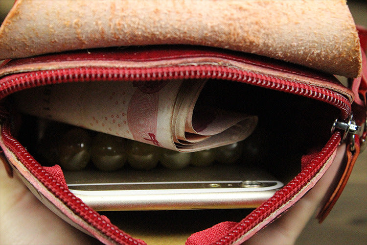 Handmade Vegetable Tanned Leather Pig Monkey Cute Men's Messenger Bags