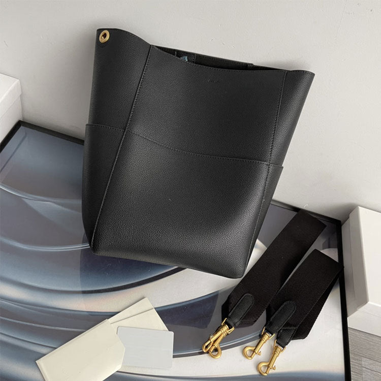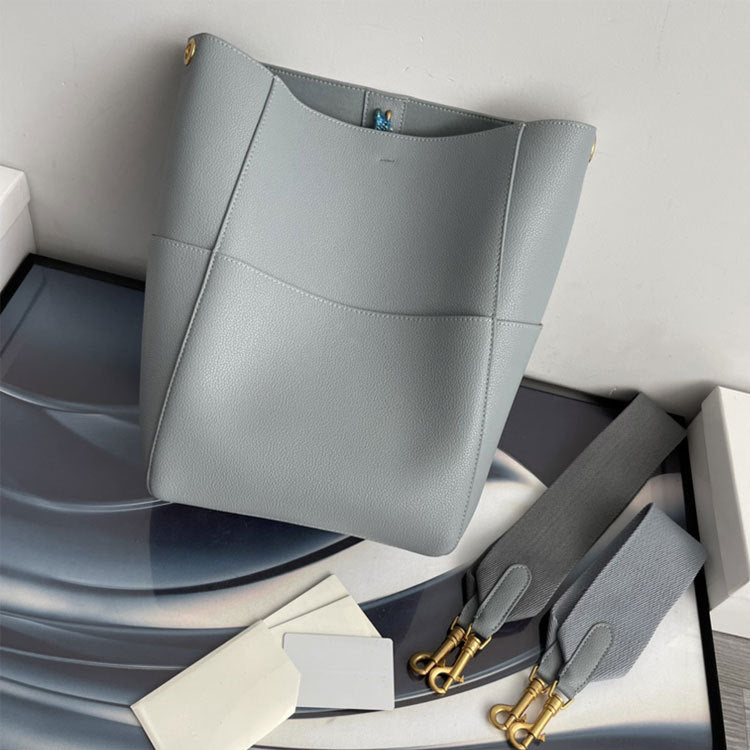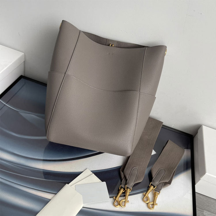 Lady's Korean Style Solid Color Wide Strap Bucket Bags