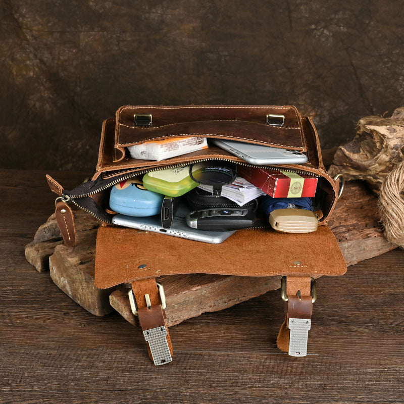 Men's Ancient Hipster Crazy Horse Leather Retro Men's Shoulder Bags