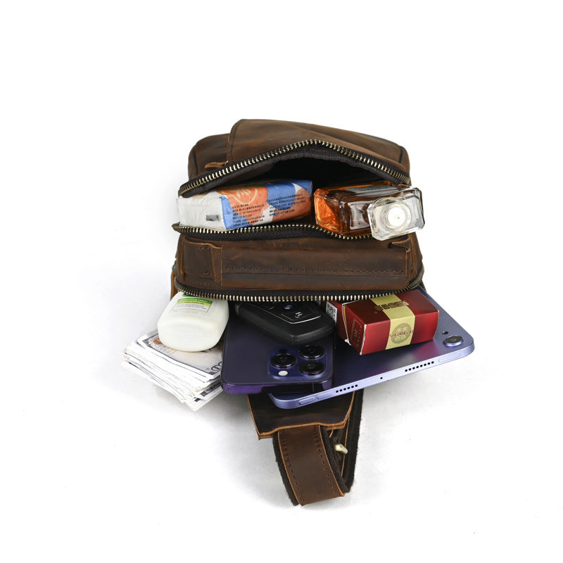 Men's Ancient Hipster First Layer Crazy Horse Men's Chest Bags