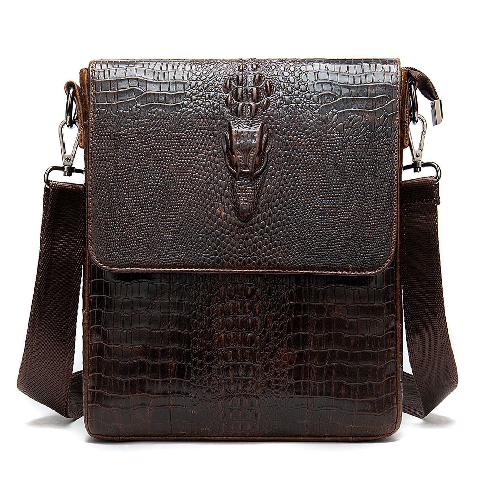 Men's Cowhide Genuine Leather Vintage Crocodile Pattern Men's Messenger Bags