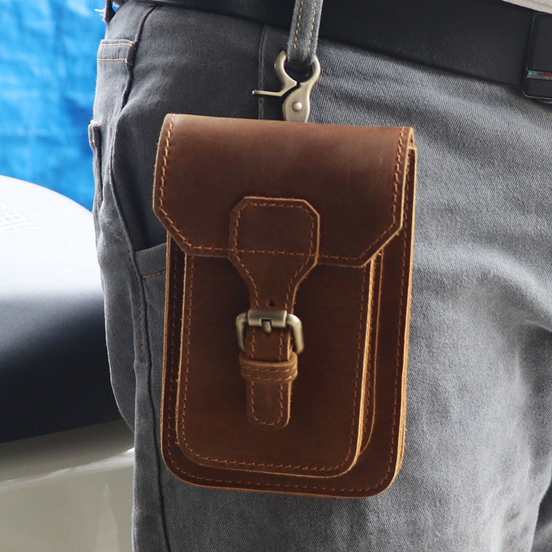 Men's Crazy Horse Leather Cell Genuine Cattlehide Men's Waist Packs