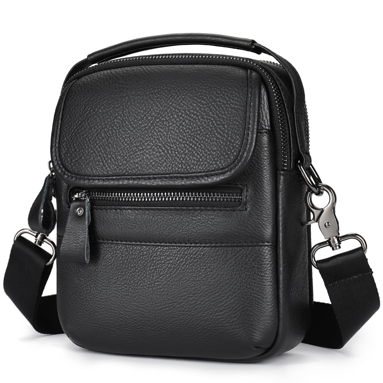 Men's First Layer Cowhide Multifunctional Black Commuter Men's Shoulder Bags