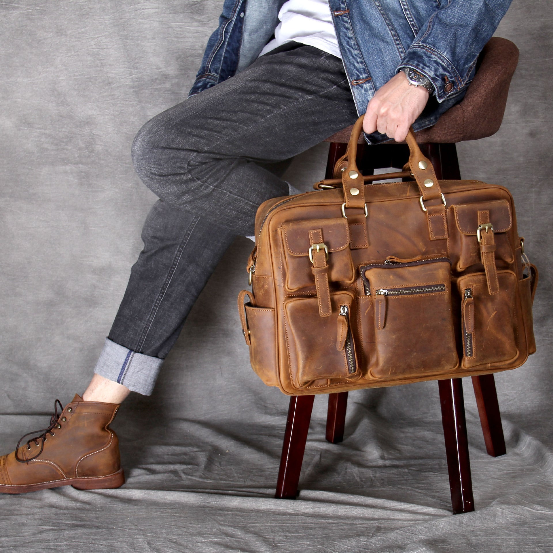 Men's First Layer Leather Large Capacity Handmade Travel Bags