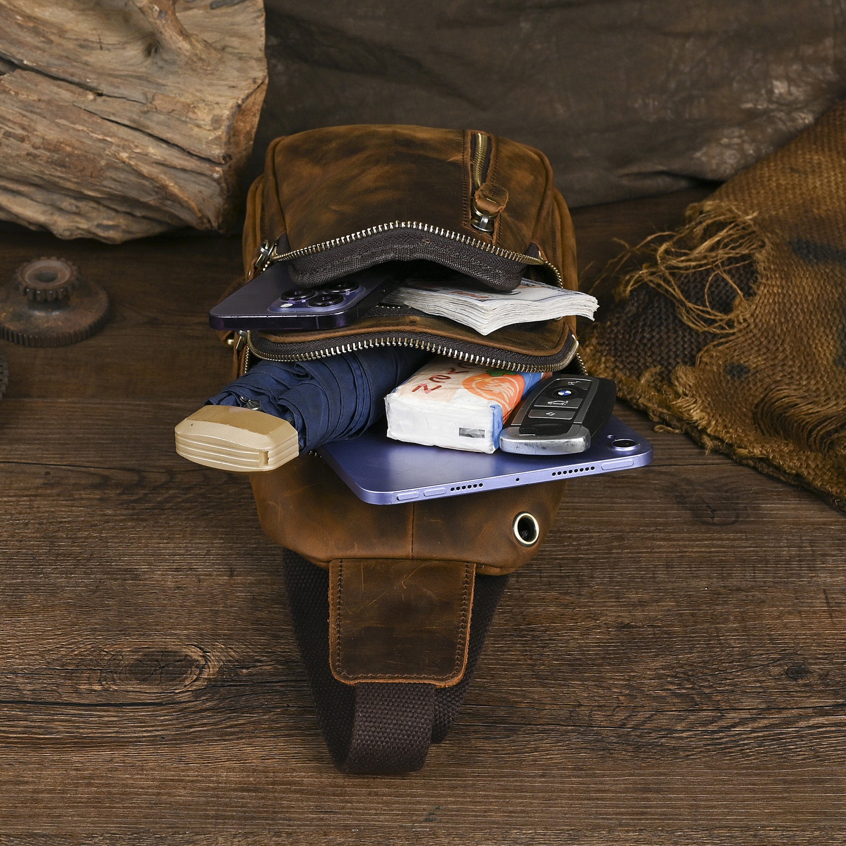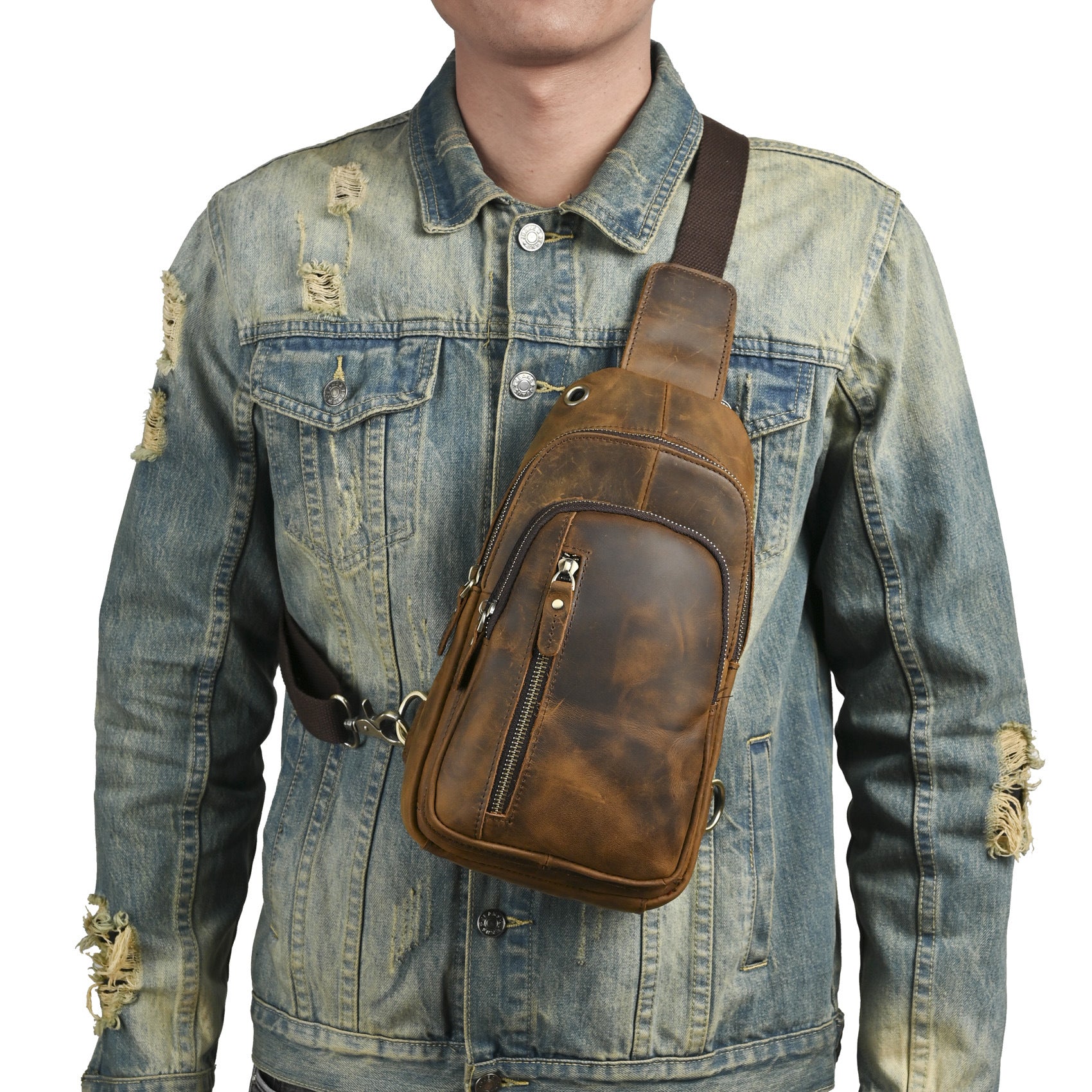 Men's Layer Crazy Horse Skin Cowhide Retro Men's Chest Bags