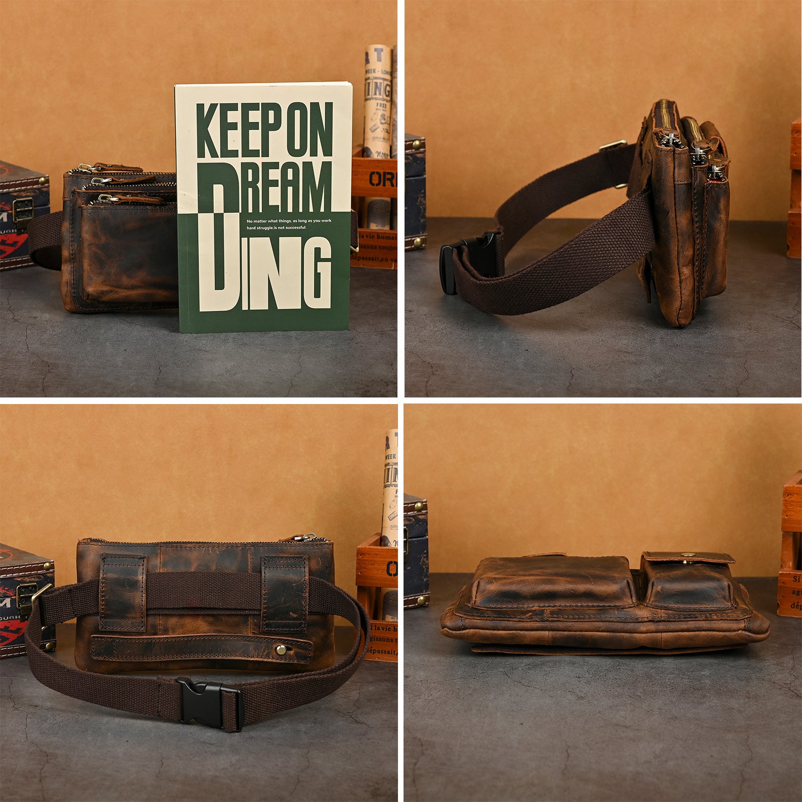 Men's Layer Crazy Horse Skin Cowhide Trendy Men's Chest Bags