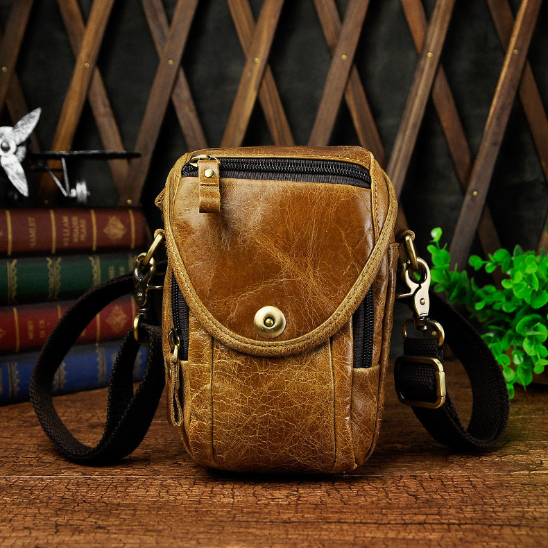 Men's Layer Oil Waxed Leather Cowhide Hiking Men's Chest Bags