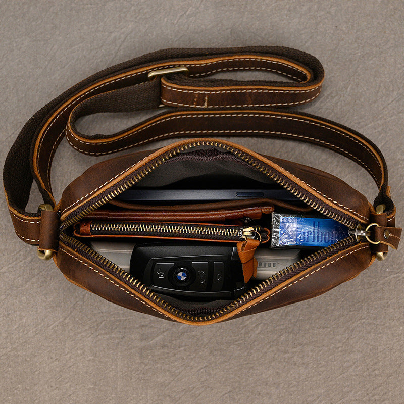 Men's Leather Crazy Horse Lightweight First Layer Cowhide Men's Shoulder Bags