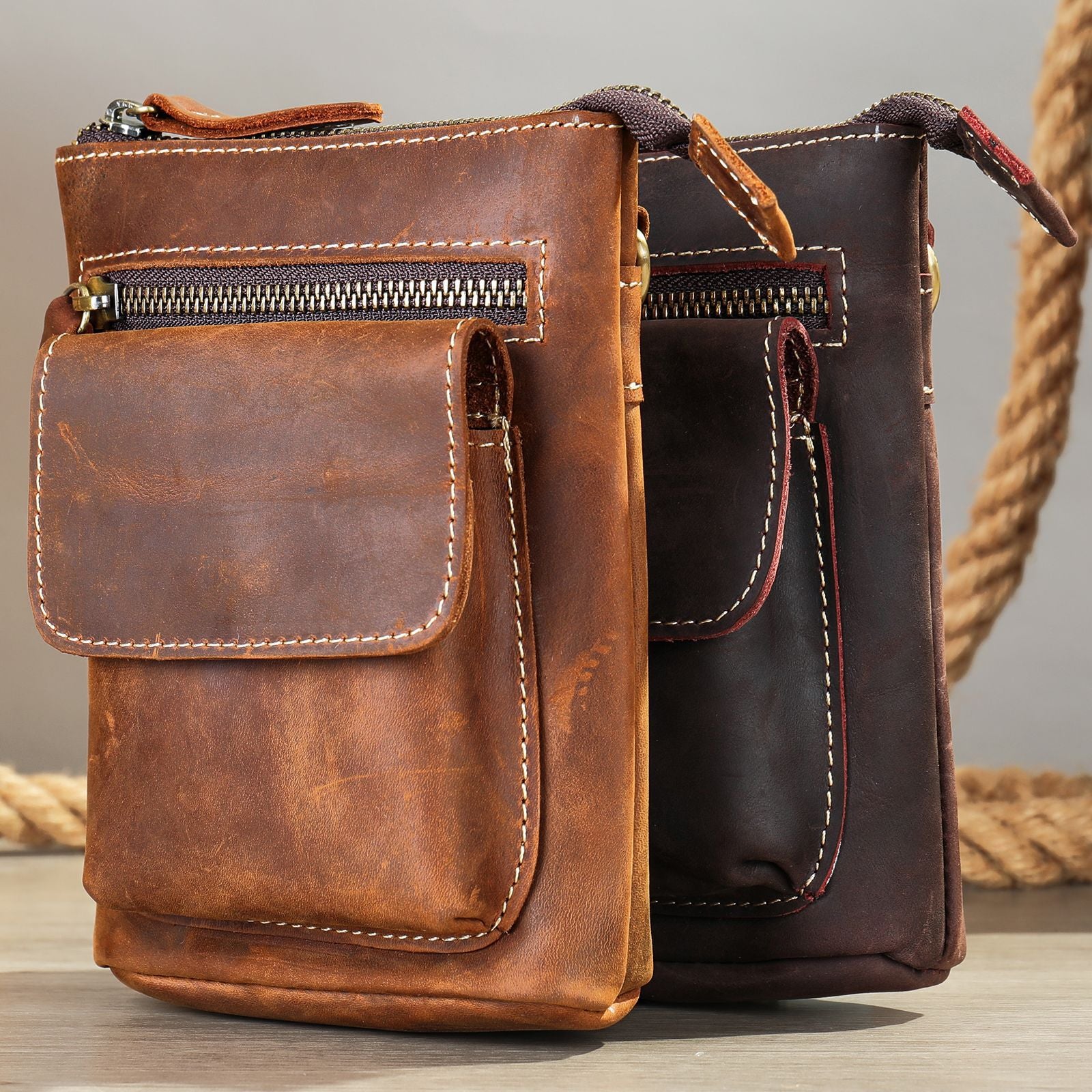 Men's Leather Mobile Pouch Genuine Retro Multifunctional Men's Waist Packs