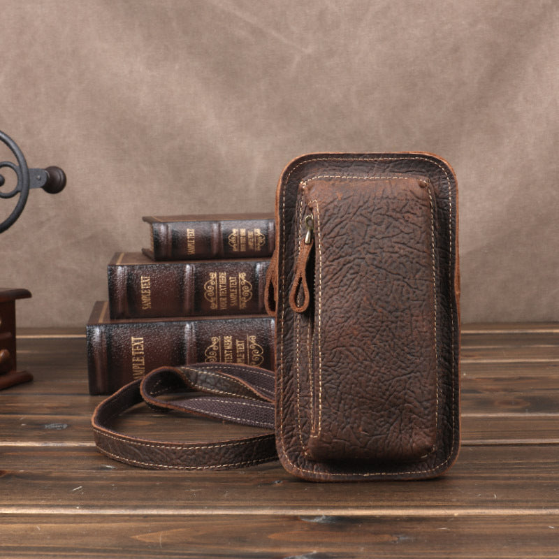 Men's Leather Pocket Crazy Horse Mobile Vertical Men's Waist Packs
