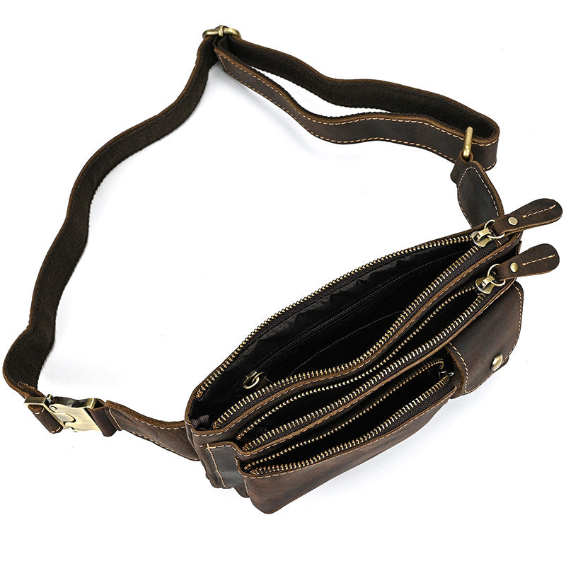 Men's Leather Retro Crazy Horse Mobile Men's Chest Bags