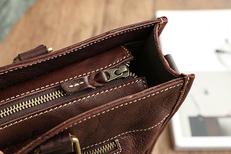 Men's Retro Hand-rub Color Cowhide Business Portable Men's Briefcases