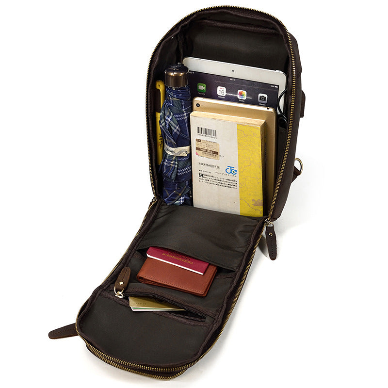 Men's Retro Leather Charging Crazy Horse Large Men's Chest Bags