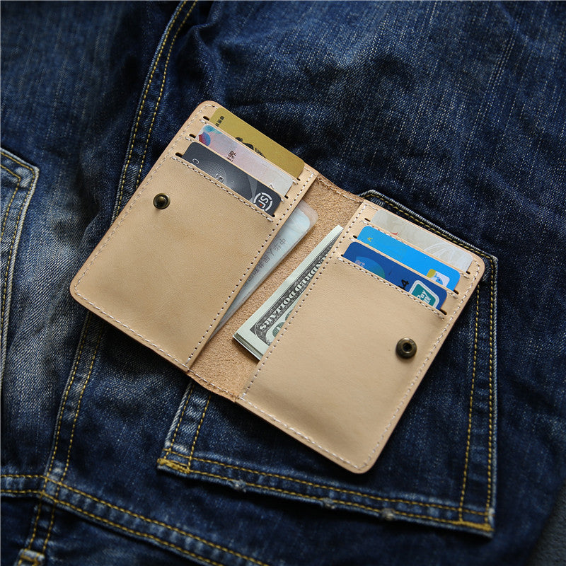 Men's Retro Short Handmade First Layer Cowhide Leather Bank Card Holder
