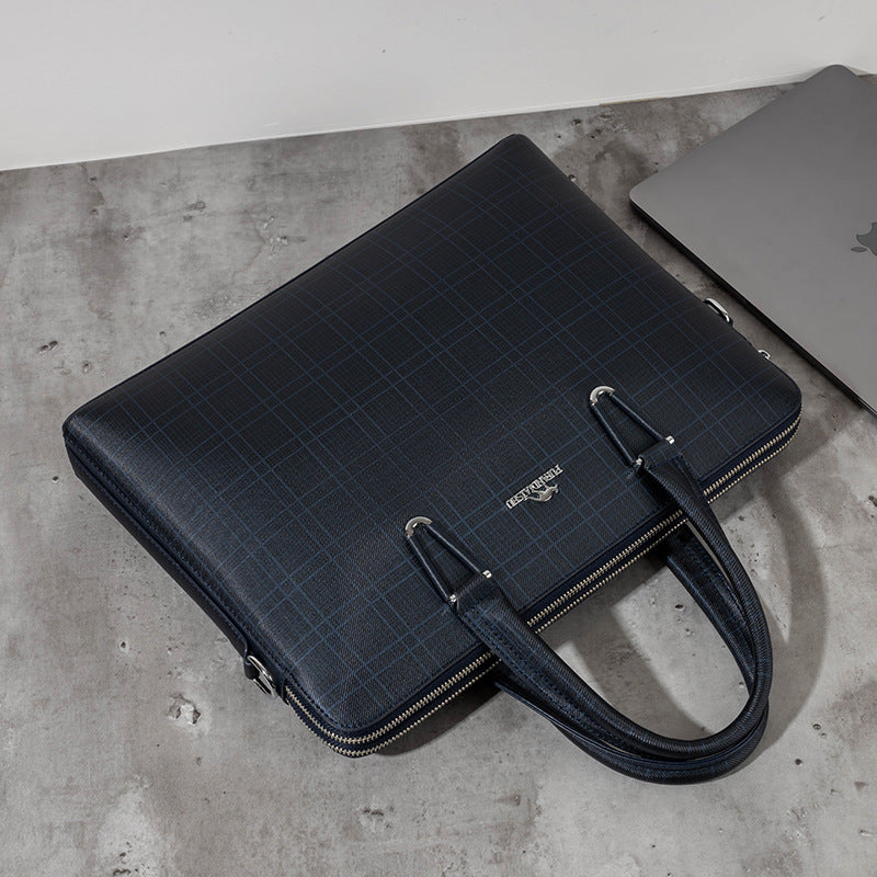 Men's Single Double Zipper Plaid Leisure Men's Handbags