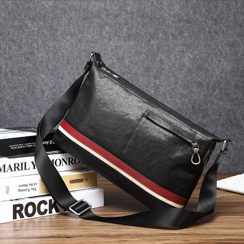 Men's Single Leather Vertical First Layer Cowhide Large Men's Shoulder Bags