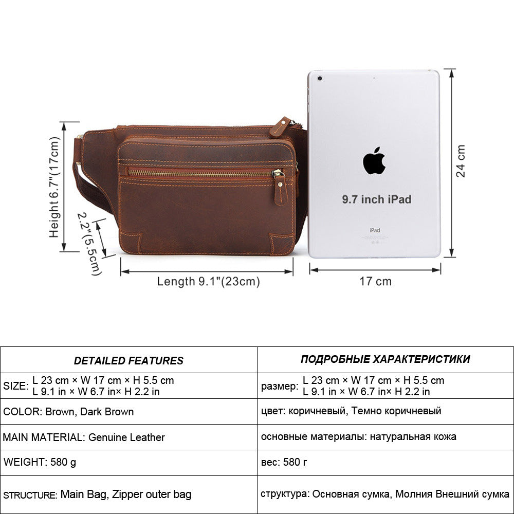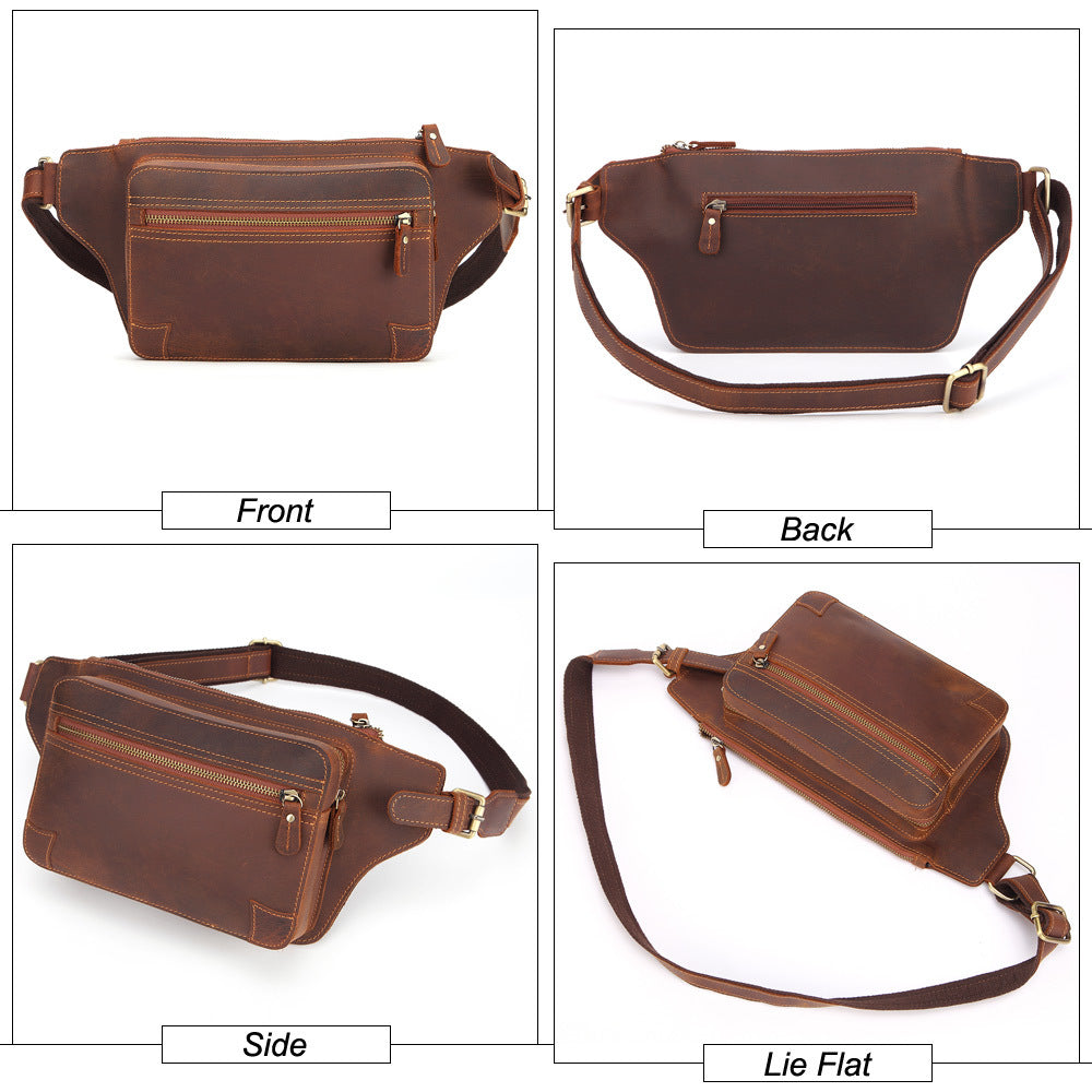 Men's Top Layer Crazy Horse Skin Storage Men's Waist Packs