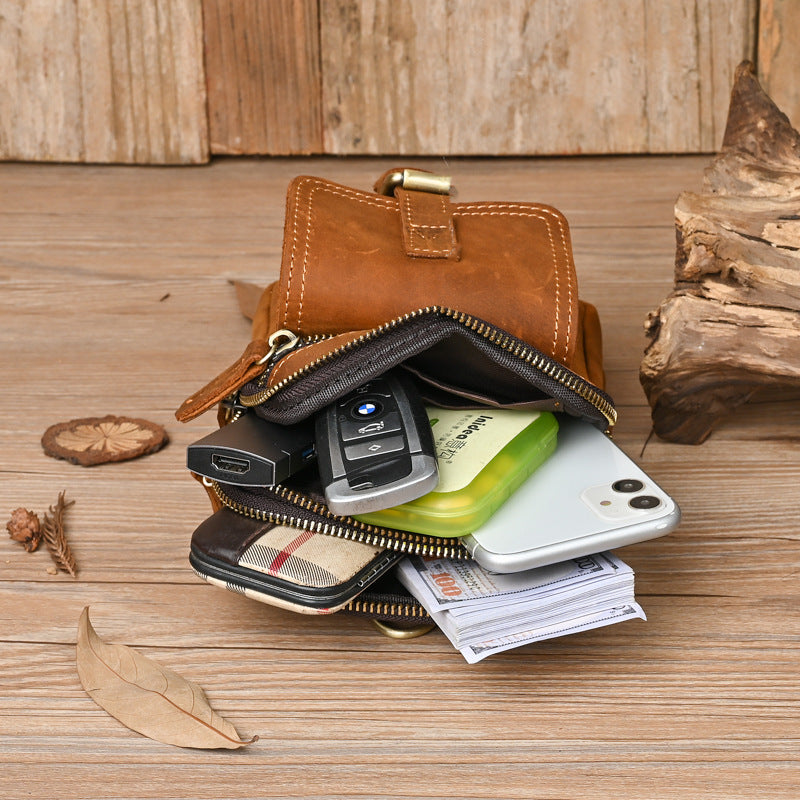 Men's Trendy Crazy Horse Leather Fashion Mobile Men's Waist Packs