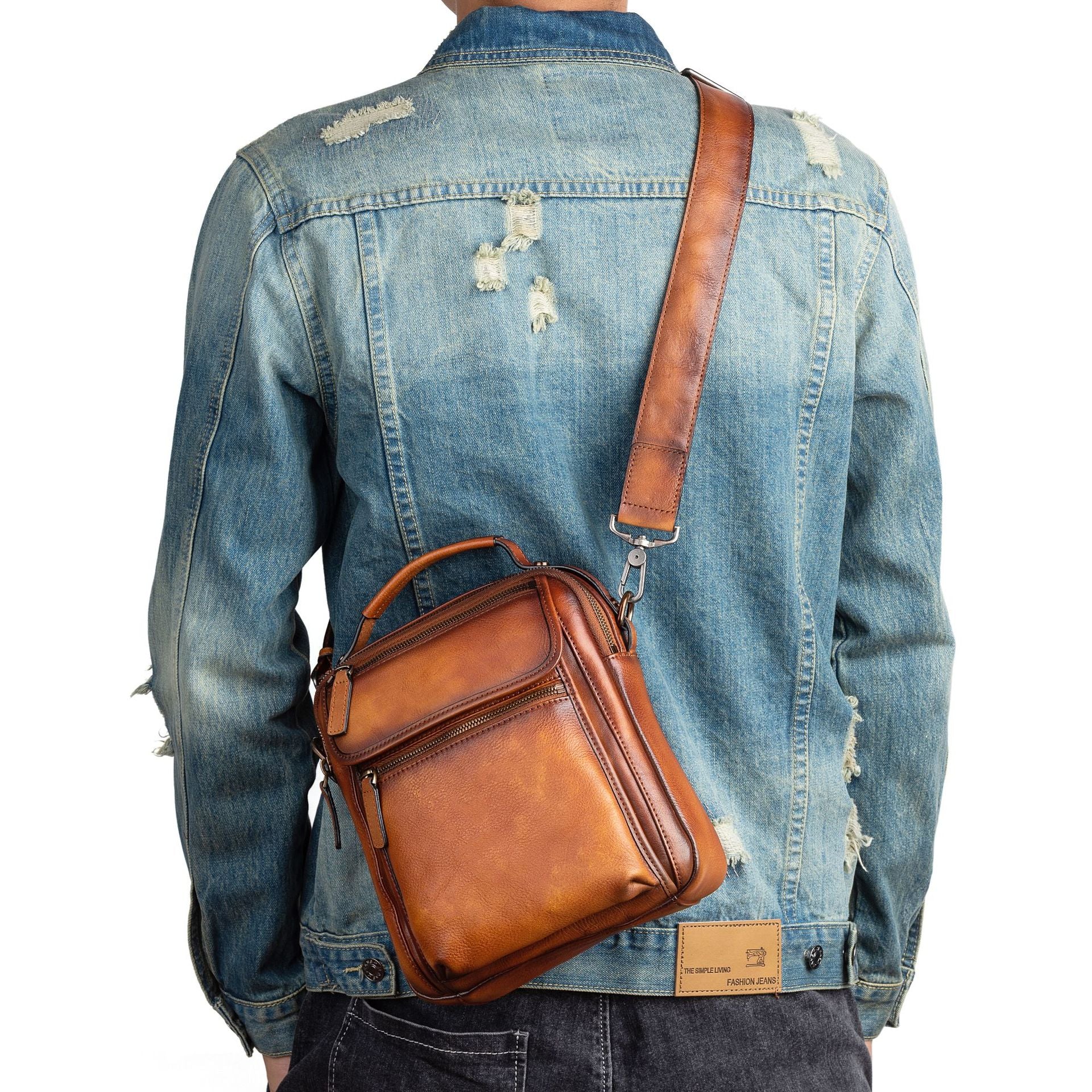 Men's Vegetable Tanning Leather Retro Daily Computer Men's Messenger Bags
