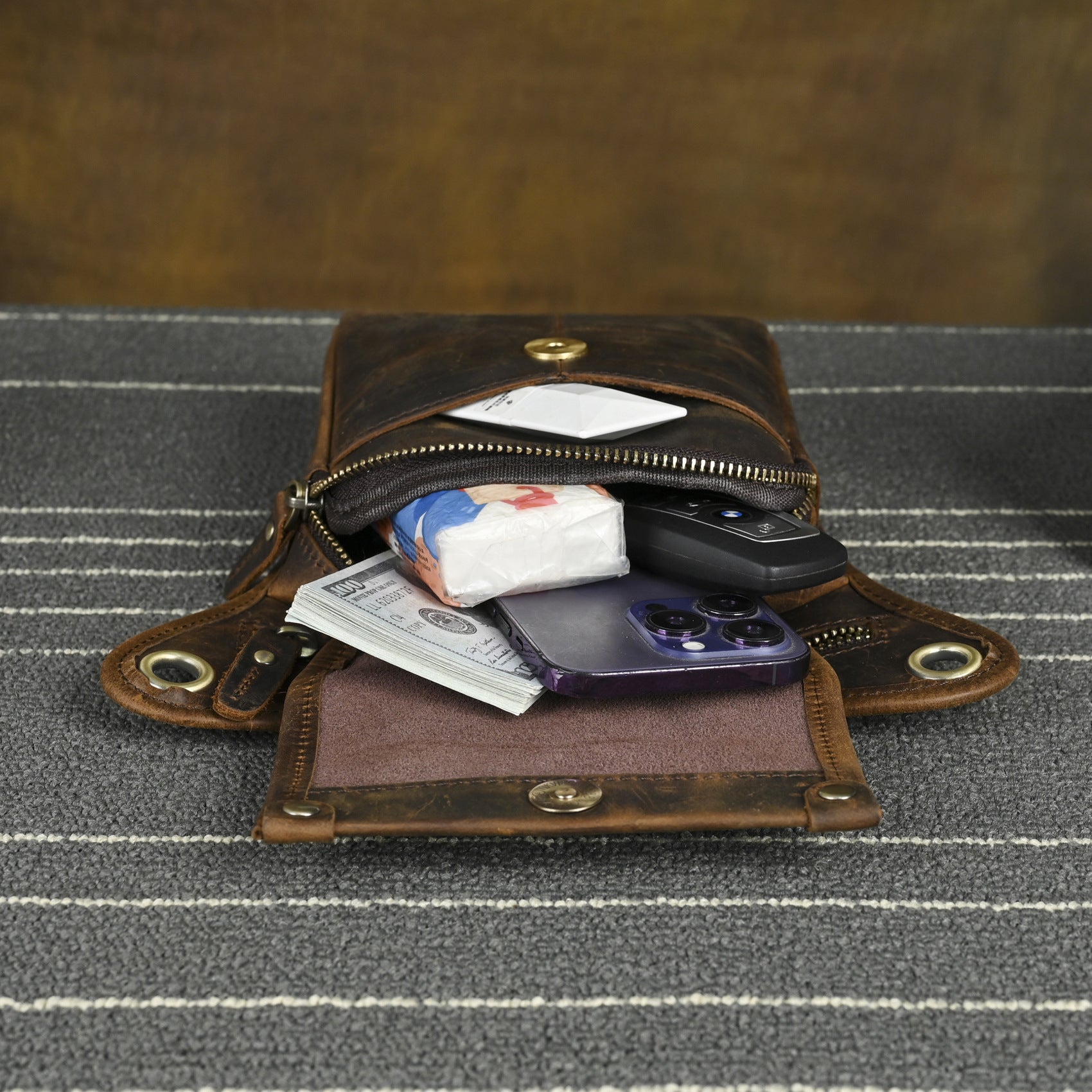 Men's Waxed Leather Cowhide Euro Trendy Cool Men's Chest Bags