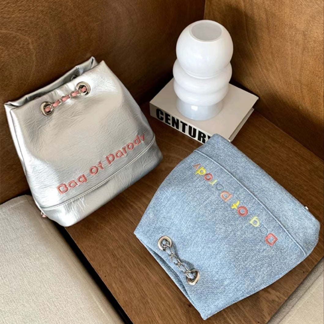Popular Female Design Denim Chain Leisure Backpacks