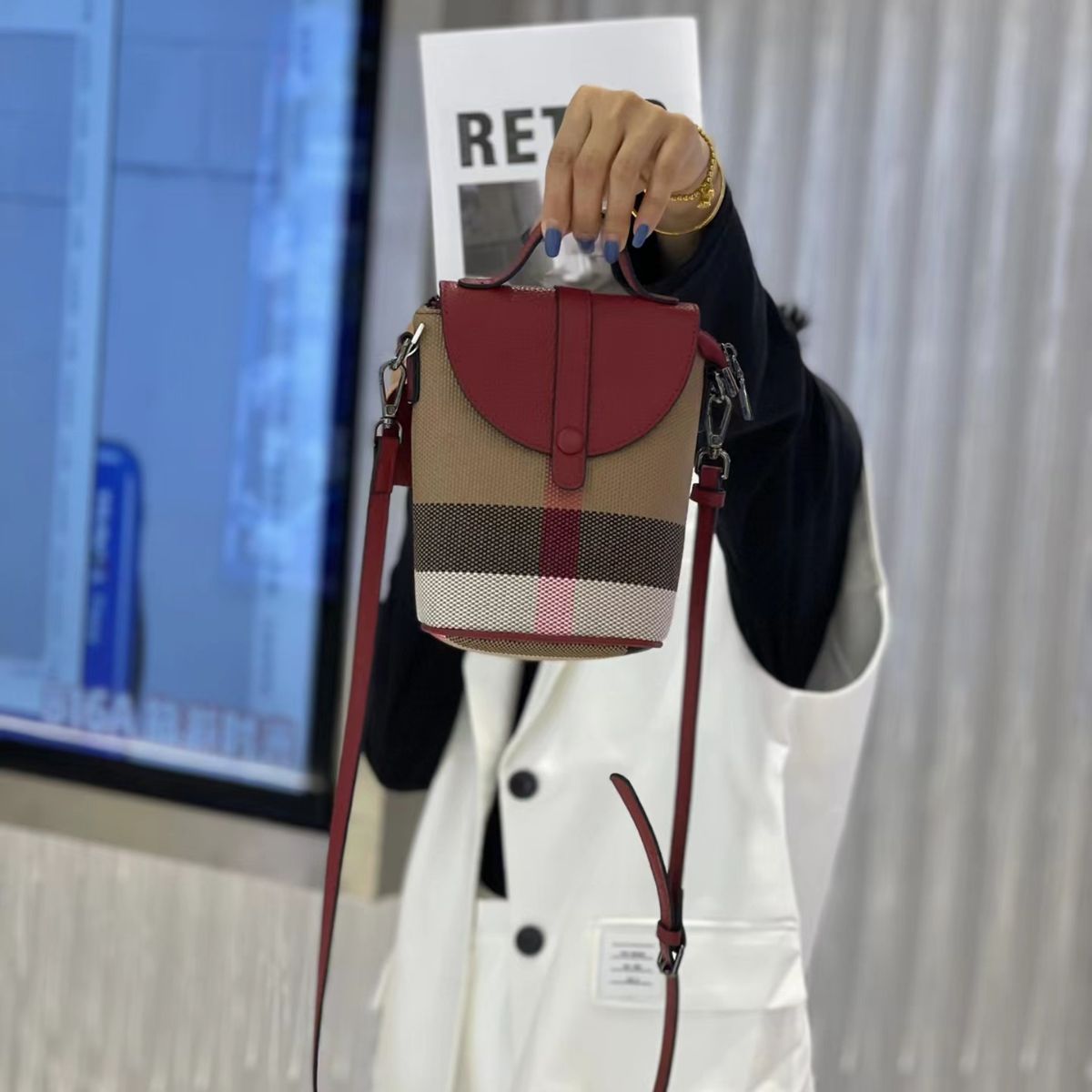 Real Leather Canvas Contrast Color One Plaid Fashion Buckle