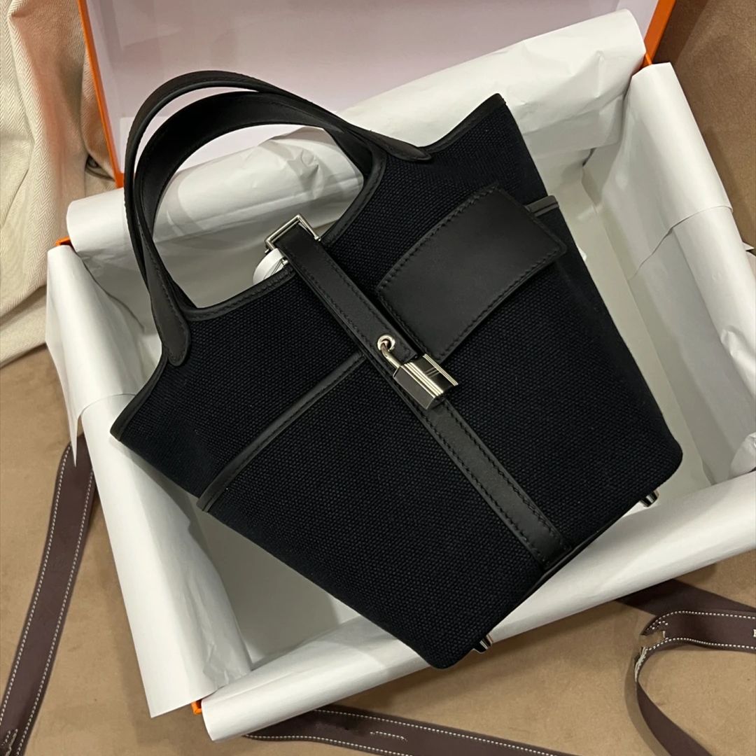 Vegetable Basket Canvas Stitching Plain Cowhide Bags