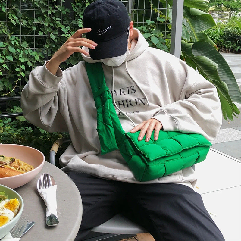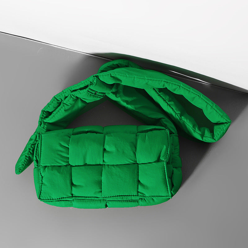 Versatile Down Sponge Woven Plaid Fashion Shoulder Bags