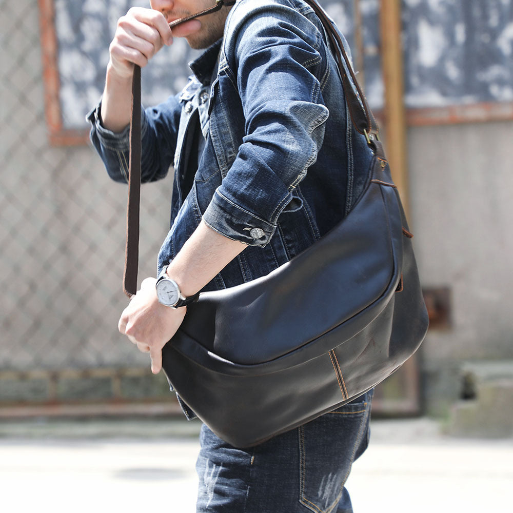 Vintage Genuine Leather Large Capacity Crazy Men's Chest Bags