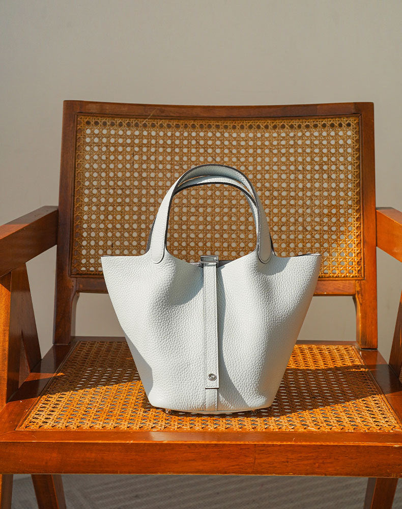 Women's Basket Layer Cowhide Leather Lychee Pattern Handbags
