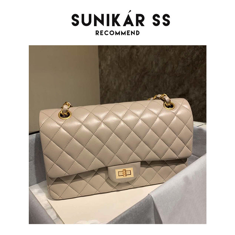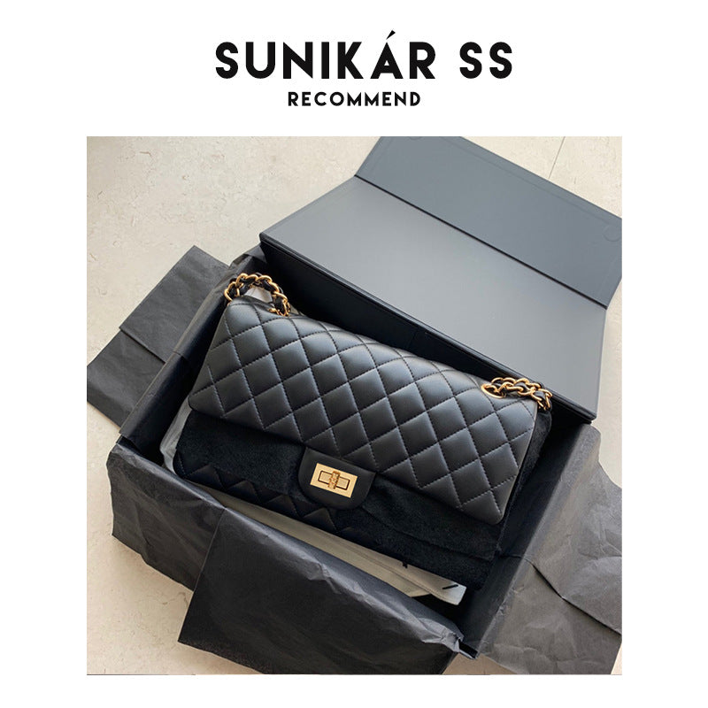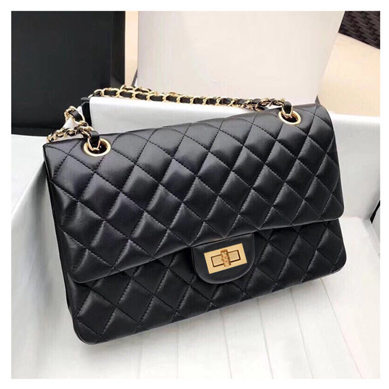 Women's Black Diamond Plaid Chain Versatile Sheepskin Shoulder Bags