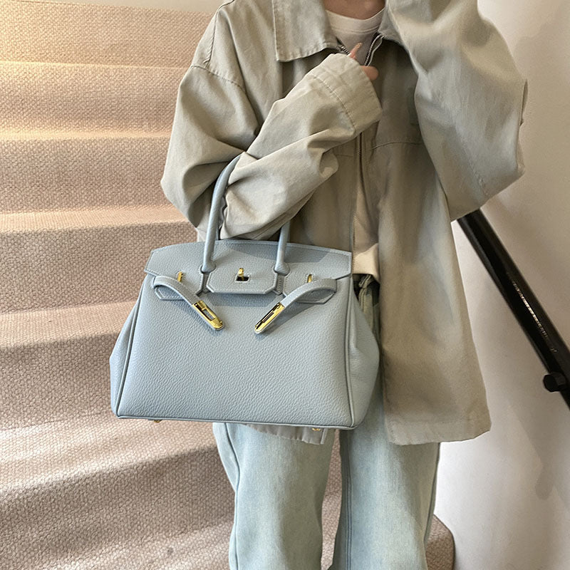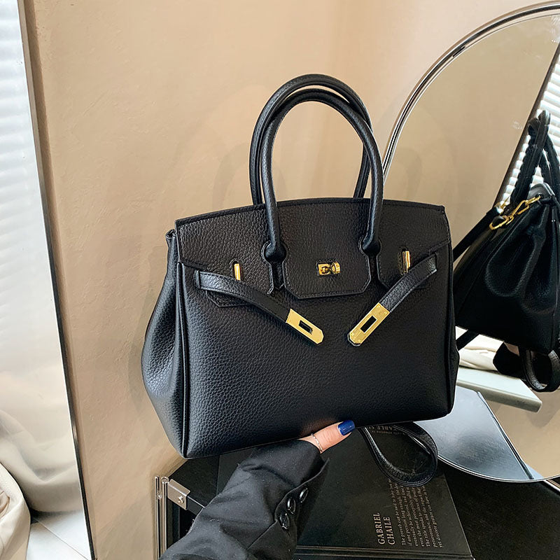 Women's Capacity Lychee Pattern Portable Kelly Fashion Lock