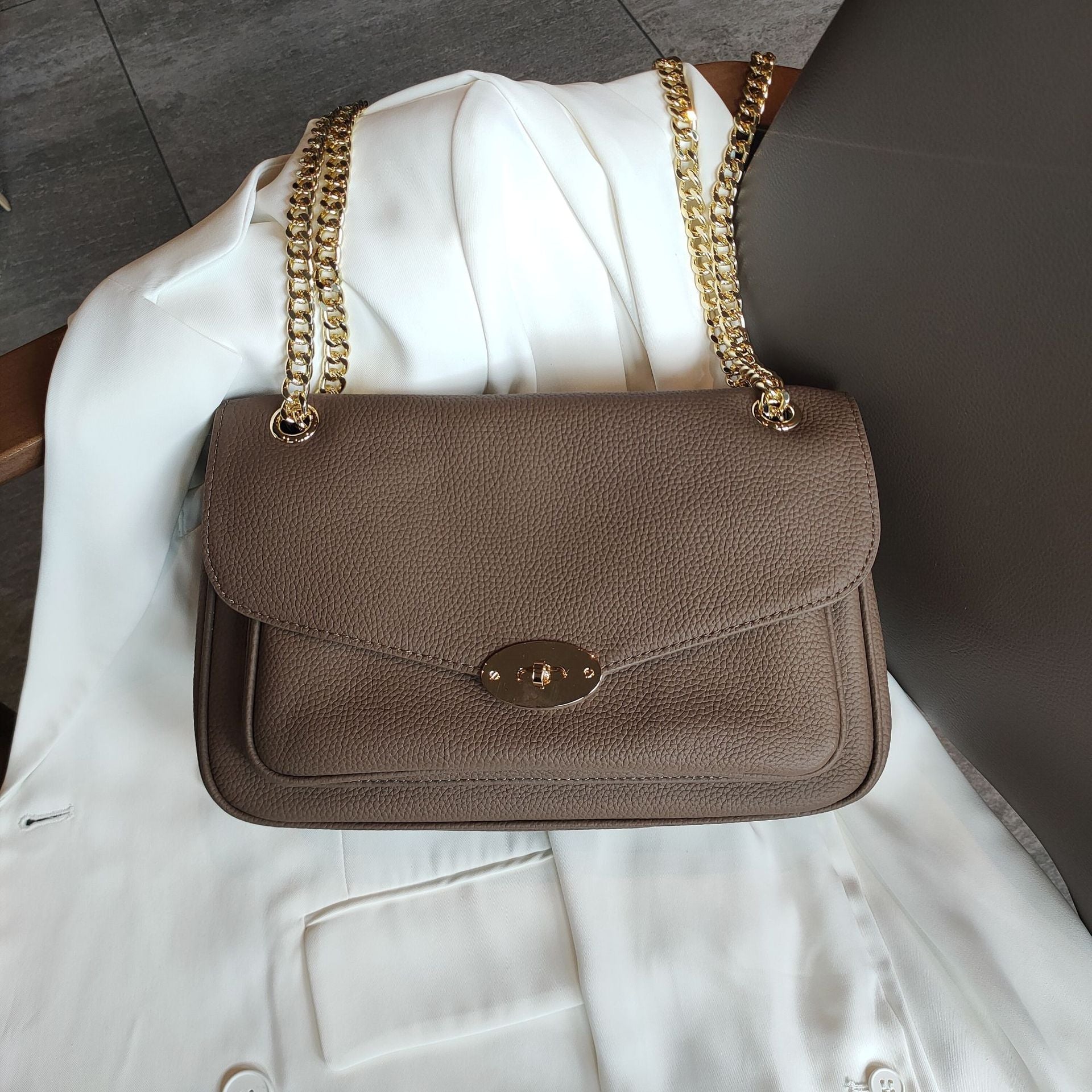 Women's Chain Design Premium Leather Portable Underarm Shoulder Bags