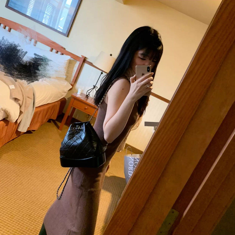 Women's Classic Style Rhombus Chain Hobo Leather Backpacks
