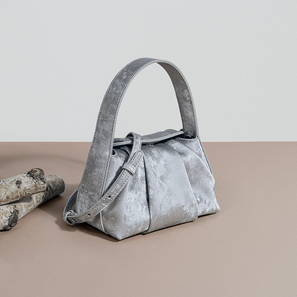 Women's Cloud National Satin Cowhide High-grade Pleated Handbags