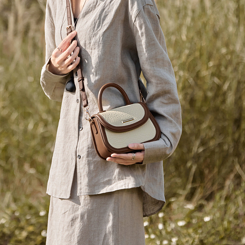 Women's Contrast Color Saddle Genuine Leather Handbags
