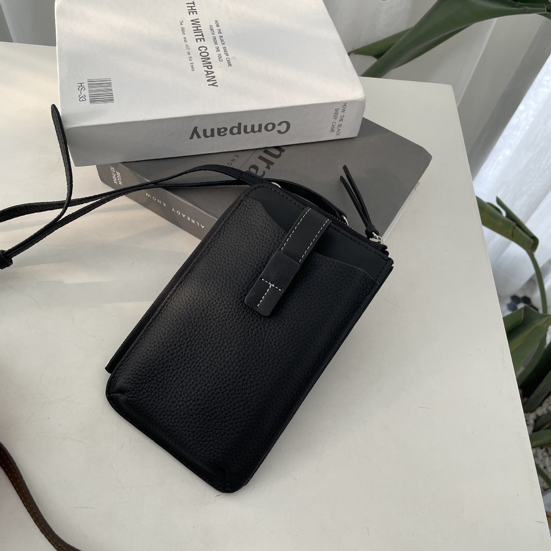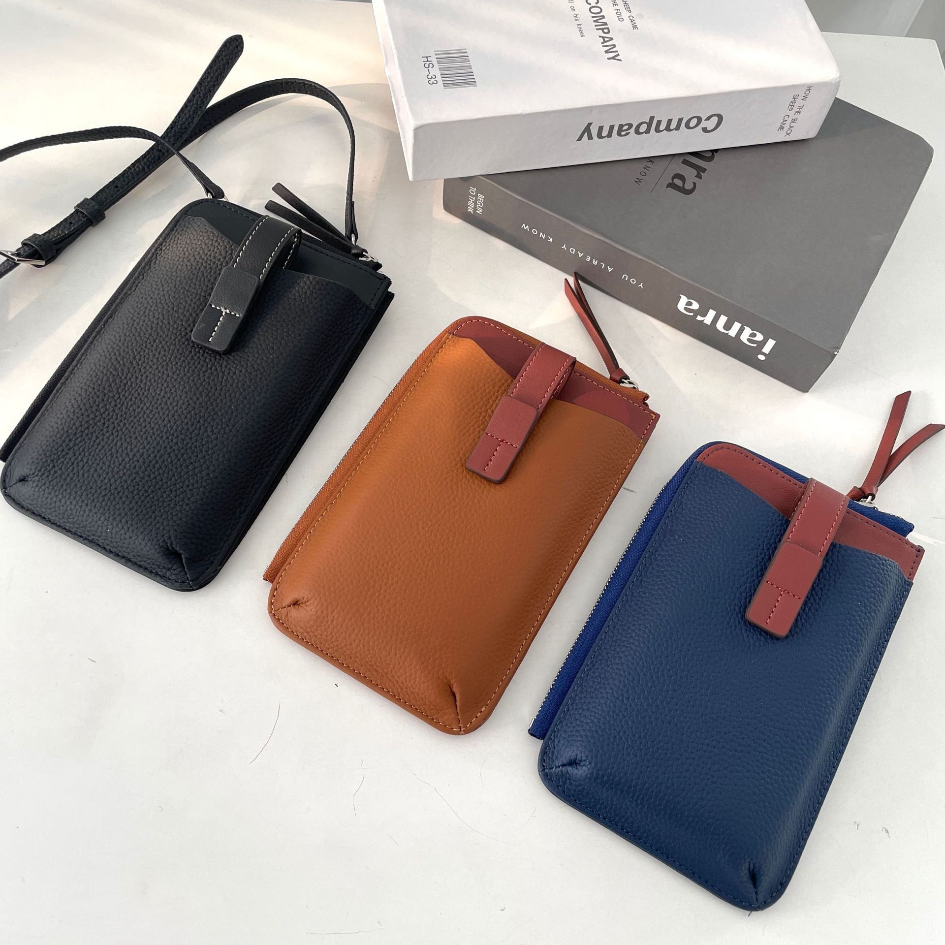 Women's Contrast Color Top Layer Leather Mini Lychee Pattern Phone Bags