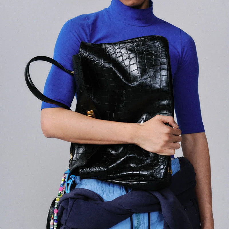 Women's Cowhide Crocodile Pattern Genuine Leather Leisure Shoulder Bags