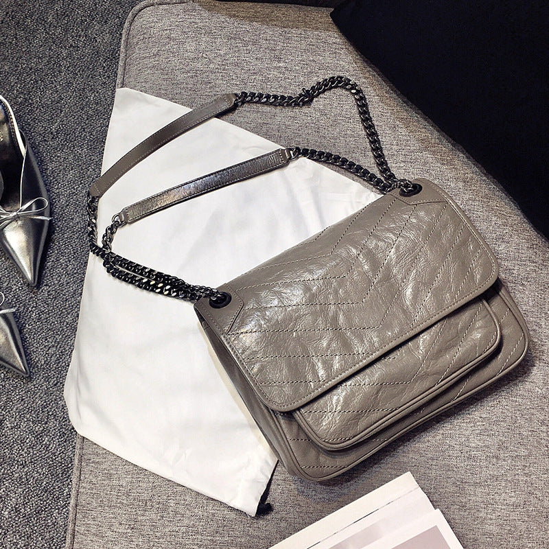 Women's Crack Cowhide Vintage Cow Leather Double Bags