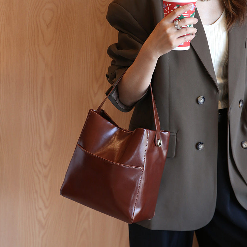 Women's Design First Layer Oil Wax Cowhide Tote Bags
