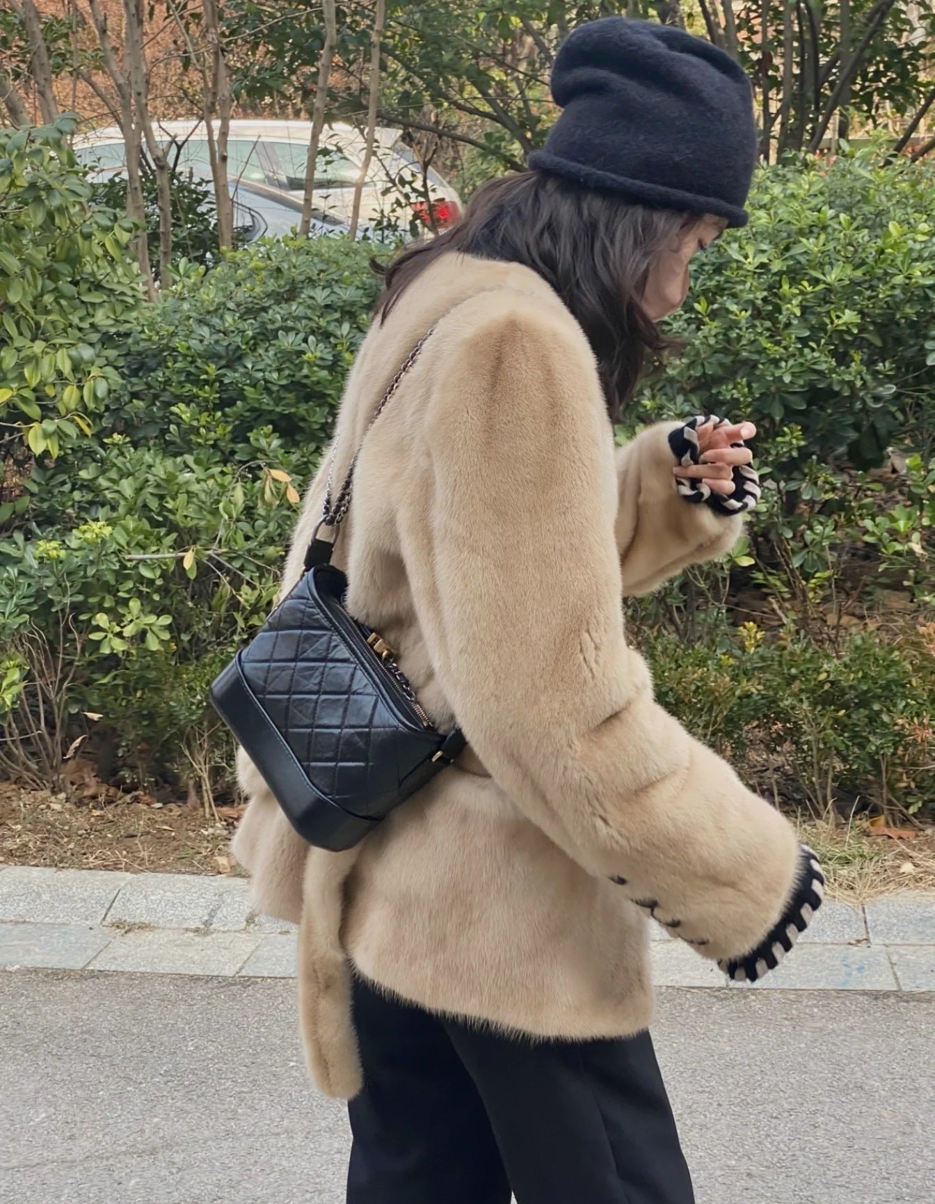 Women's Diamond Plaid Chain Genuine Leather Black Bags