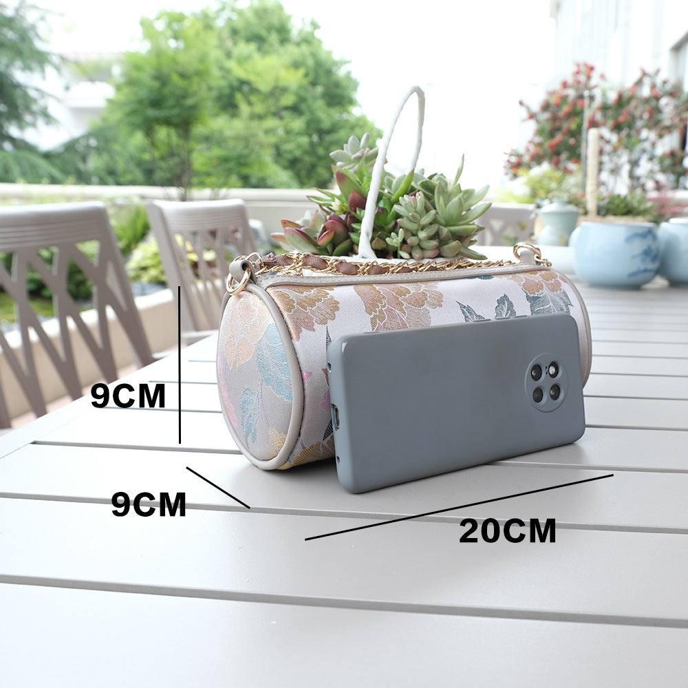 Women's Dynasty Brocade Cylinder Chinese Style Jacquard Design Crossbody Bags