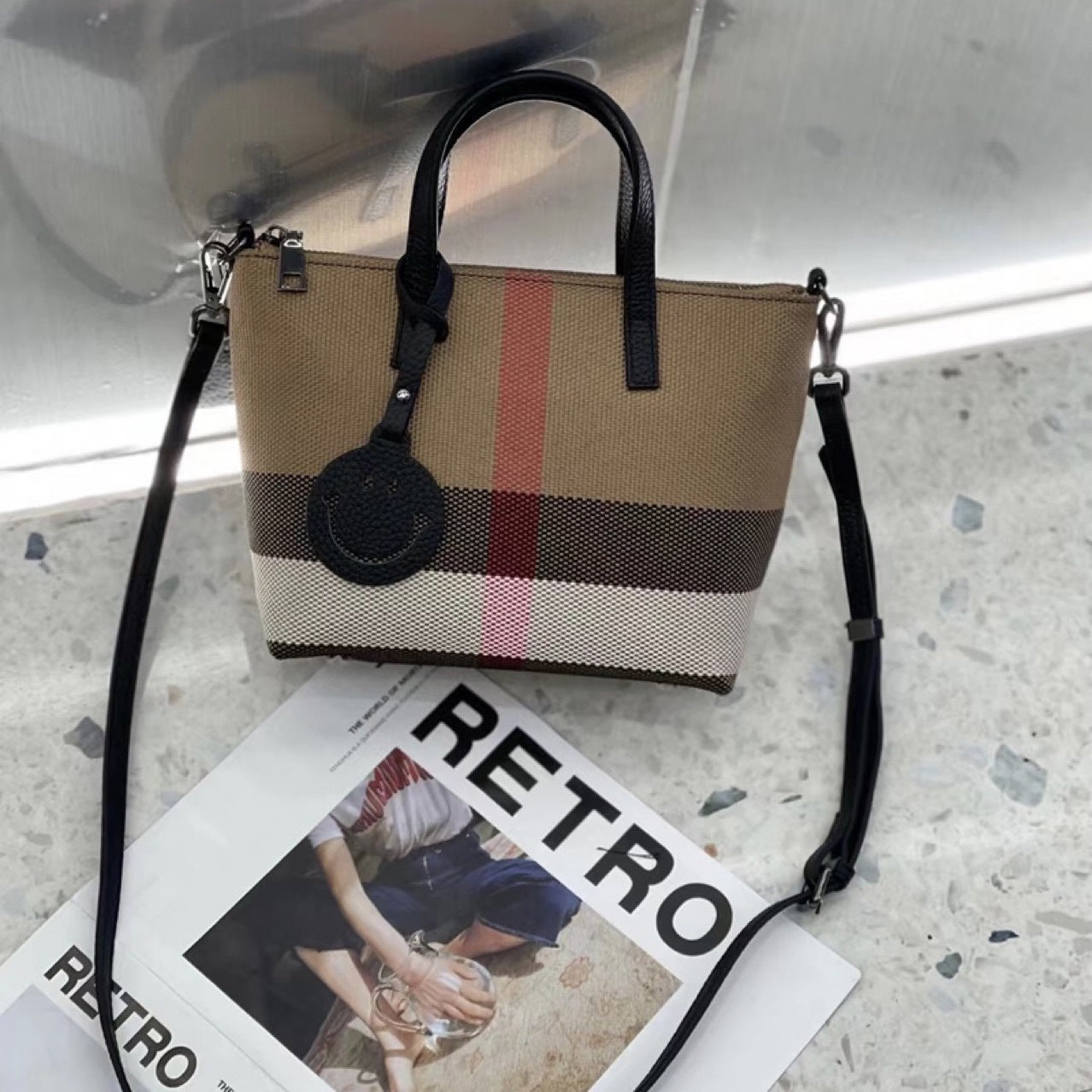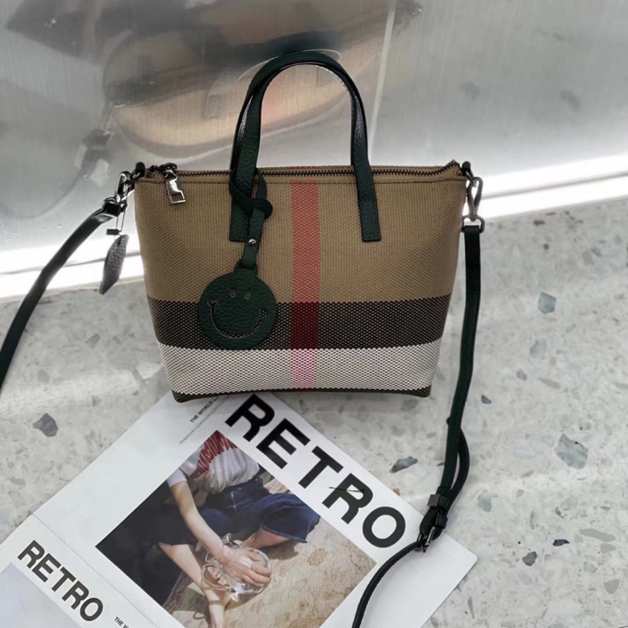 Women's Fashionable Genuine Leather Plaid Cowhide Medium Handbags