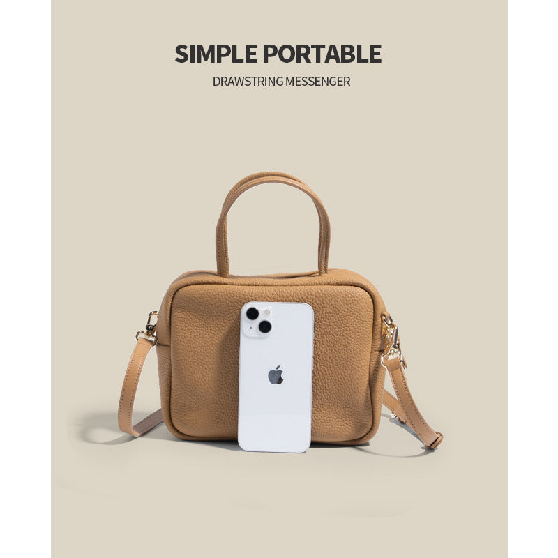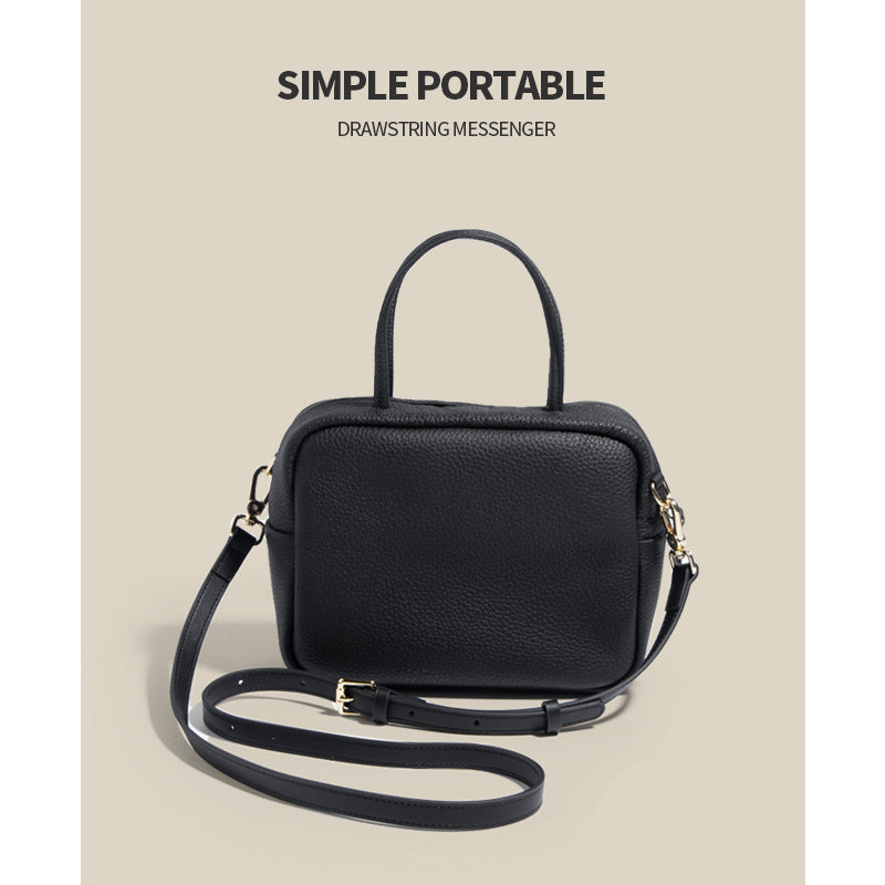 Women's First Layer Cowhide Portable Boston Genuine Small Square Bags